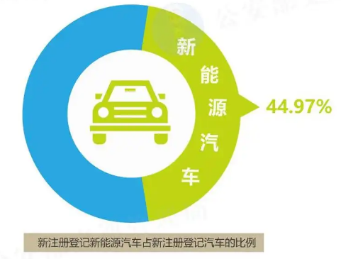 上半年新注冊登記新能源汽車562.2萬輛,同比增長27.86%,創歷史新高。新能源汽車新注冊登記量占汽車新注冊登記量的44.97%。